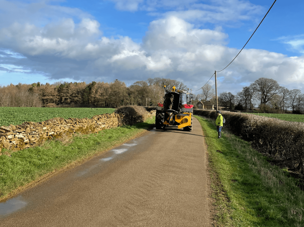 Next we had a section of road walking to Knipton village – the traffic along the road was light. We spotted some flowering Crocuses – this was great to see. The sun was on our backs and warming us up.