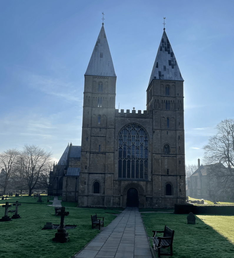 There was frost on my car first thing, but it was a sunny blue-sky day, so it didn’t take too long for the sun to work its magic. Today, Mick and I visited Southwell, a market town in Nottinghamshire and enjoyed a 6-mile circular walk in the rolling countryside surrounding Southwell. We had not been to Southwell previously so it was a voyage of discovery for us.