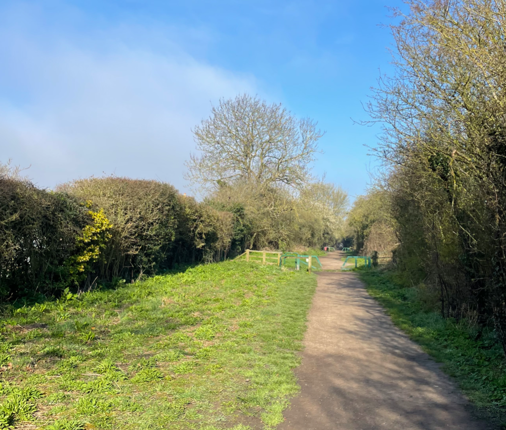 We were enjoying the sunny weather as we left the park and made our way up Cundy hill following the Robin Hood Way trail. We were starting to get glimpses of Southwell and the cathedral in the distance.