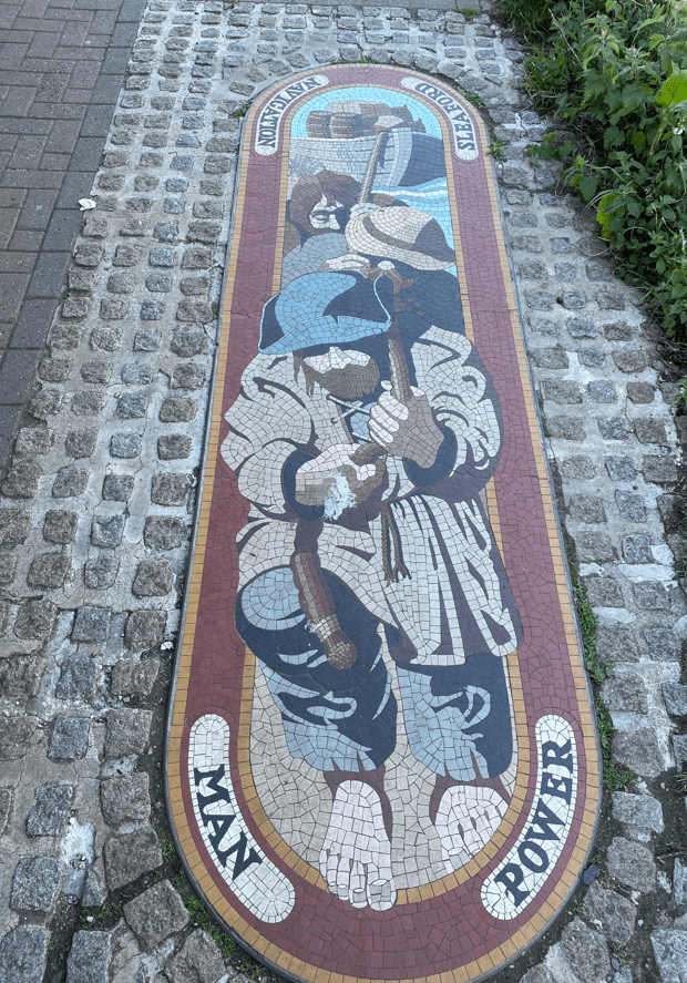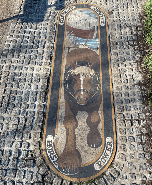 Continuing on we crossed a bridge over the river and followed the riverside path. We passed some wonderful mosaics in the footpath celebrating the areas boating heritage.