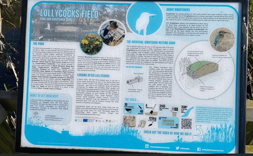 Shortly we visited Lollycocks field which is a newly (relatively new, 1986) created pond, wildlife area and Kingfisher nesting ground.