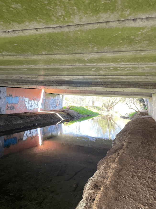 We passed under the bridge carrying the busy A17 where the walls were full of urban art (i.e. graffiti)