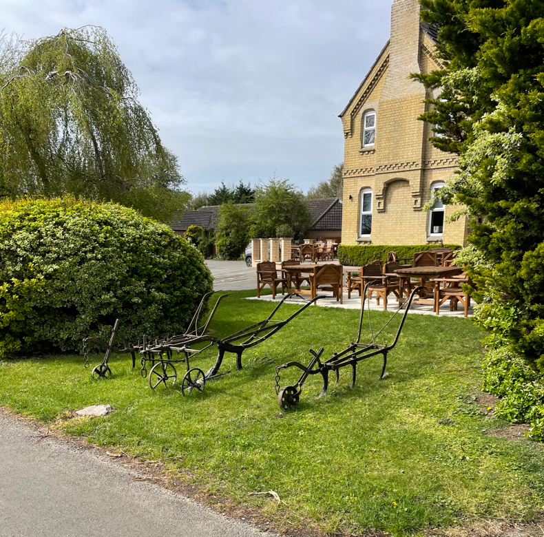 Arriving into Ewerby we found a bench and took a much needed break. After my obligatory scotch egg we continued walking through the village past the church and a very nice hotel -The Finch Hatton https://thefinchhatton.co.uk/ which has old horse drawn ploughs on display. If you visit the website, the history section is interesting to read especially the connection with a Robert Redford film.