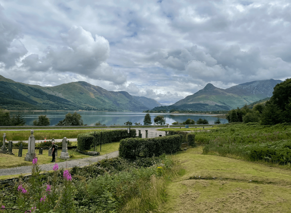 After visiting the visitors centre in Ballachulish – worth a visit- we headed to St Johns Church where we had fine views of Loch Leven and the Pap of Glencoe.