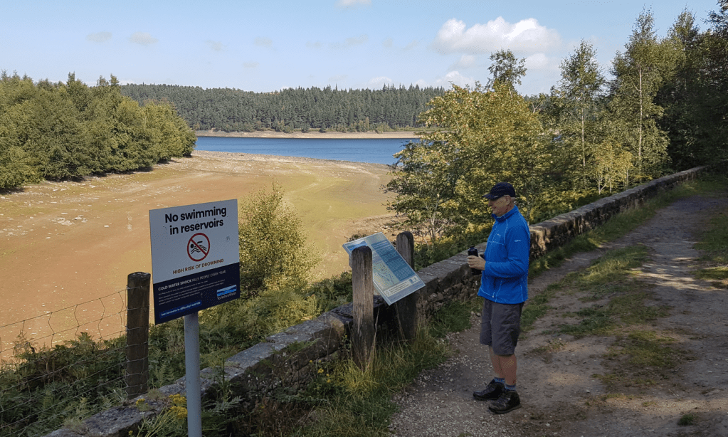 Soon we were heading to Langsett reservoir and we paused by the side of it, at a handy bench, for a drink.