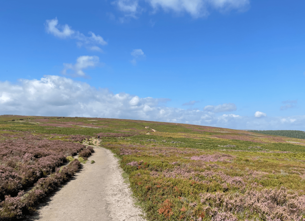 We had a lovely view of Midhope reservoir as we traversed Edge cliff, pausing for a cuppa and butty while enjoying the vista. We could see the purple heather on the rolling hills in the distance- stunning!