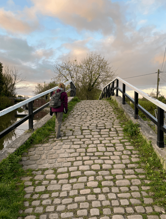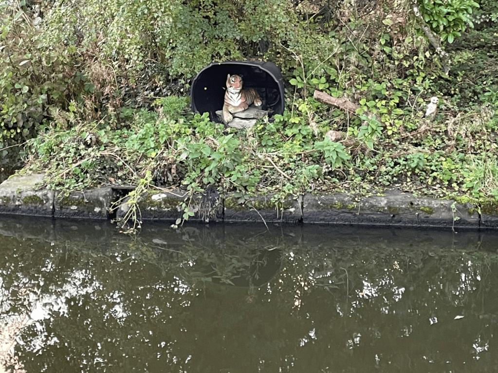 It was early so there was no one stirring. We walked along the towpath, up a cobbled path over a bridge and then we spotted a tiger! Thankfully, it was on the opposite bank 😊.