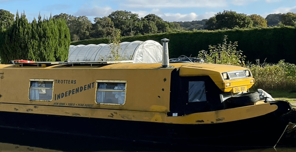 Walking along the towpath we spotted a boat where there was a definite theme of ‘Only Fools and Horses’. The back half of a reliant robin on the stern and the front half on the bow.