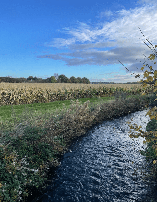 We picked up a track that took us beside the river Maun. The path was slightly muddy but could have been worse. The sun was starting to put in a welcome appearance.