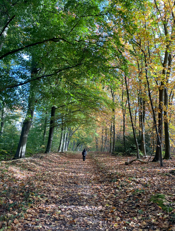 The trees in the forest were full of Autumnal colours and sweet chestnuts were covering the floor. I’d never seen so many! Mick picked some up to feed the squirrels at home. We saw signs to say that part of the forest is a Naturist area – needless to say, this resulted in a bit of banter.