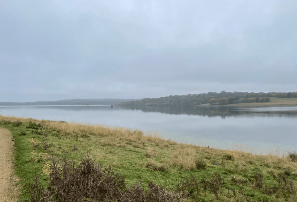 The water on the reservoir was perfectly still and with no wind it felt surreal. On the East coast we are used to being battered by winds so this calm weather is quite unusual.