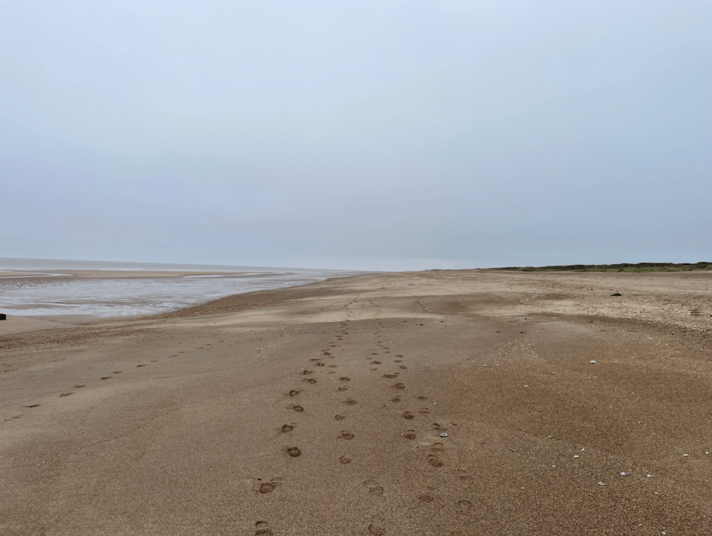 In October myself and Angela walked along the quiet Lincolnshire beach near Chapel St Leonards. Not a soul about 😊.