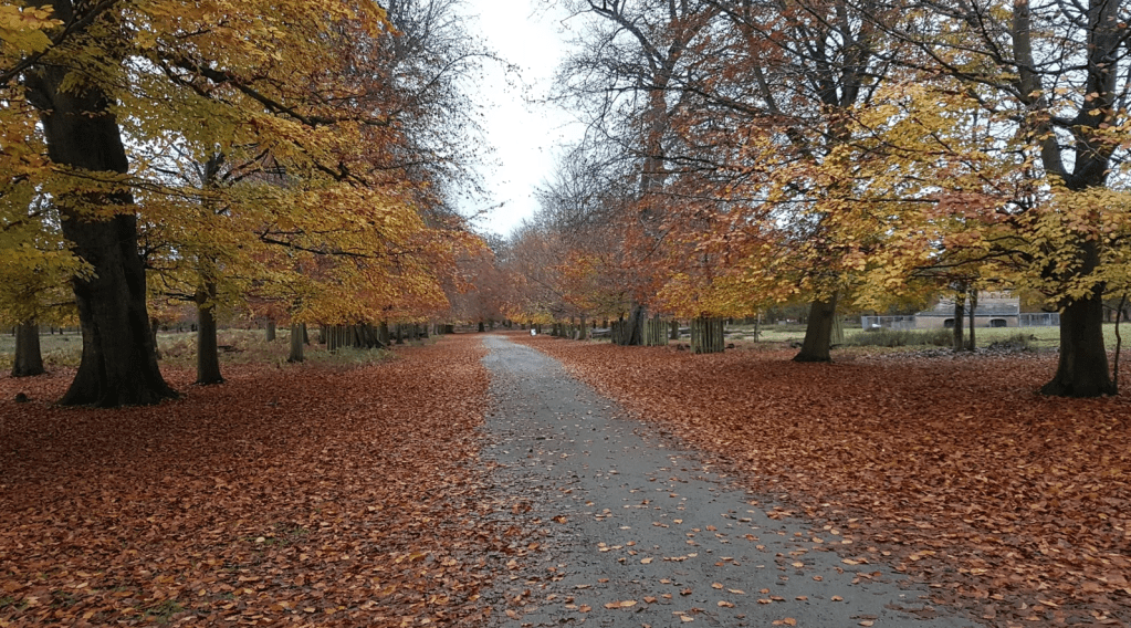 In October myself and Mick walked in Sherwood Forest – the autumnal leaves were falling.