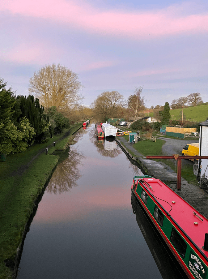 Today myself and Angela enjoyed a 5-mile walk along the Shropshire Union Canal followed by a visit to the National Waterways Museum at Ellesmere Port. It was dark when we set off from the house to drive to Tiverton, but the sun was just rising as we parked up in a lay-by close to the canal.