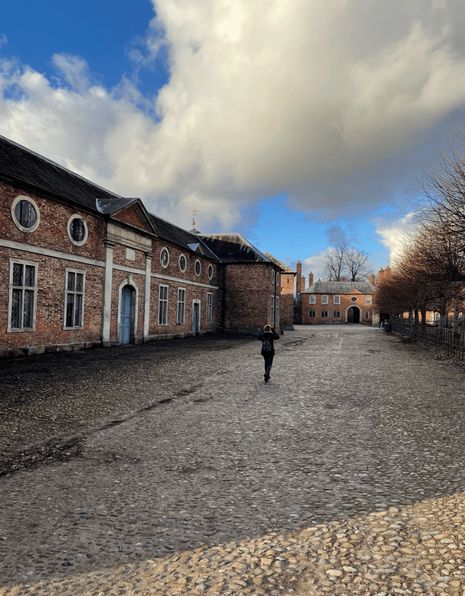 Leaving the canal we headed for the National Trust’s Dunham Massey where we could grab a coffee. A tree lined muddy path brought us into the park where we passed the old mill and the beautiful cobbled stone yard by the stable block.