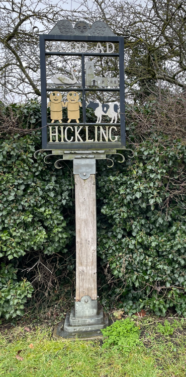 Leaving the village we followed the footpath up a gradual hill – Hickling Standard. The path was quite boggy and it got worse – a sign of things to come! Reaching the top we took in the extensive view and then headed down via a different path to avoid the treacherously, slippery, muddy path by which we had ascended.