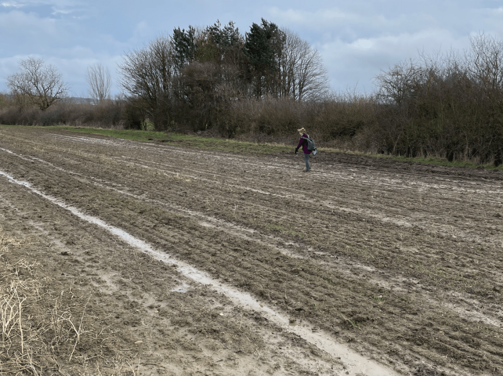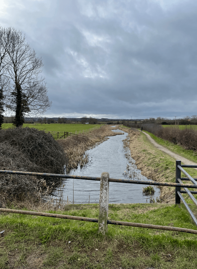 Thankfully, our new path down was relatively mud free and brought us back into Hickling. Leaving Hickling our next section of the walk was roughly 3.5 miles across, what turned out to be, very muddy fields. The fact that horse riders clearly use some of the route did not help with the condition of the path. We did not enjoy the muddy fields – it makes walking slow and tricky. On this section we crossed over the small river Smite which forms the Nottinghamshire and Leicestershire county boundary.