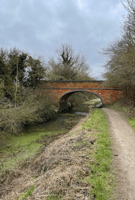 Here we joined the towpath which, we rejoiced, was mud free. The canal is a restoration project so currently there are long sections covered in weed.