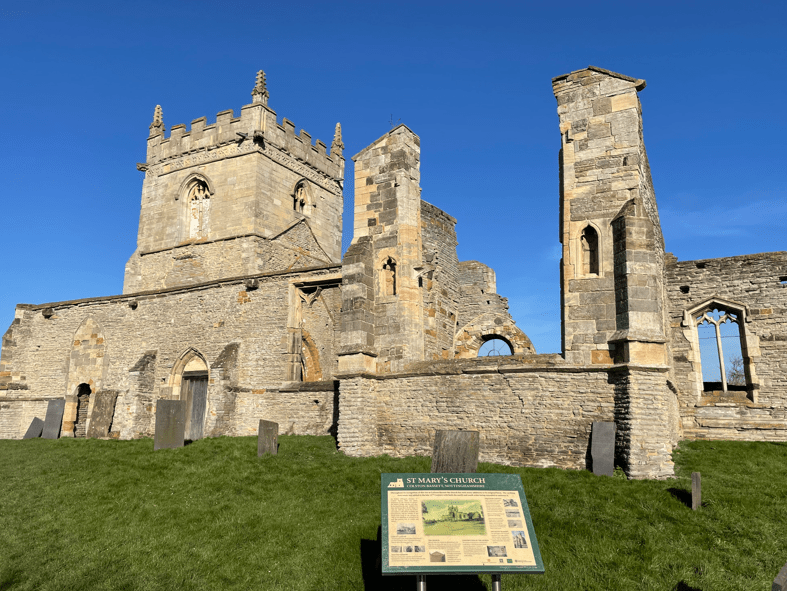 After about a mile we left the canal and walked along quiet country lanes rising gently to to bring us to the ruins of St Marys church, close to Colston Bassett.