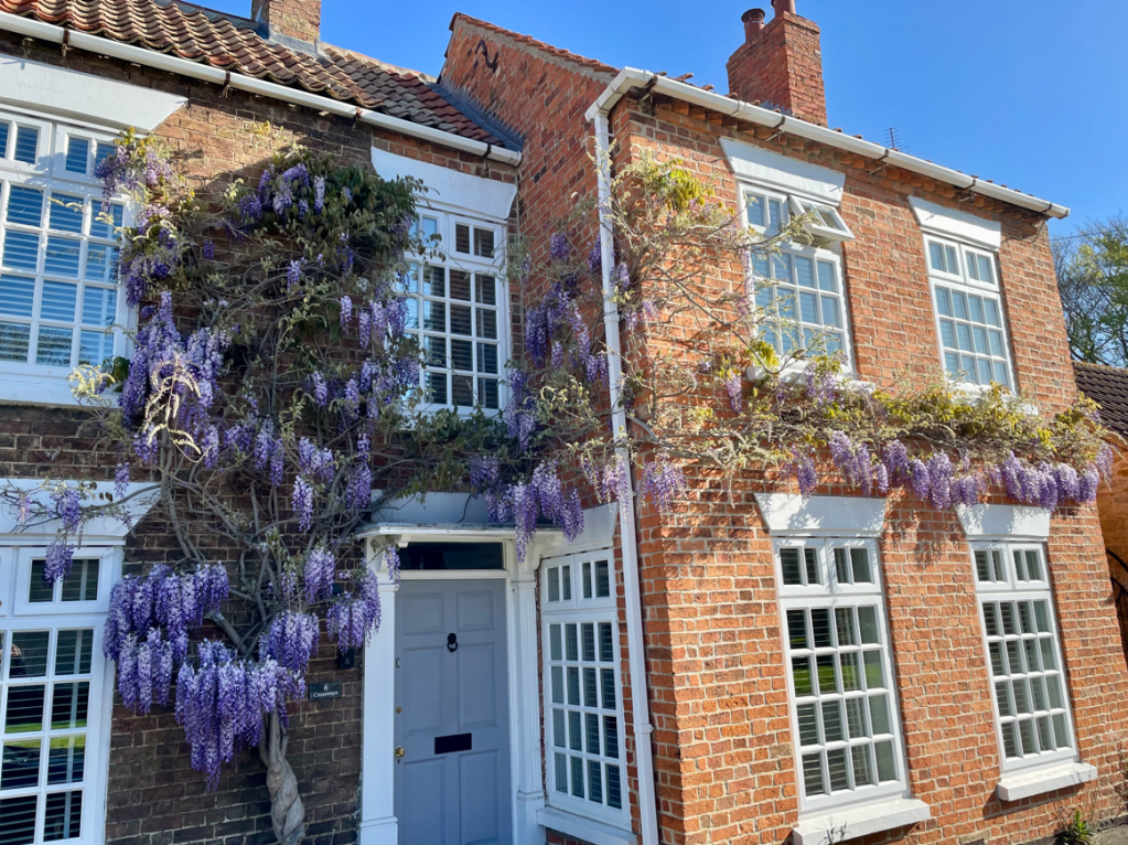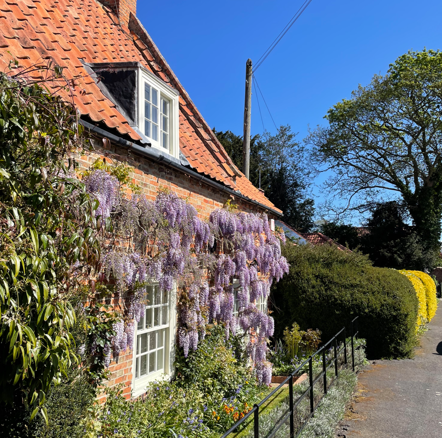 Soon we were arriving back into Osbournby, passing another cottage with Wisteria. Wonderful!