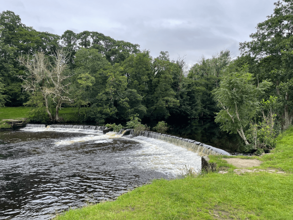 On day 2 we walked as a group of five together with a walk leader. Our route started in Sedbergh and we began by walking beside the river Rawthey towards the hamlet of Millthrop. We passed a nice weir.