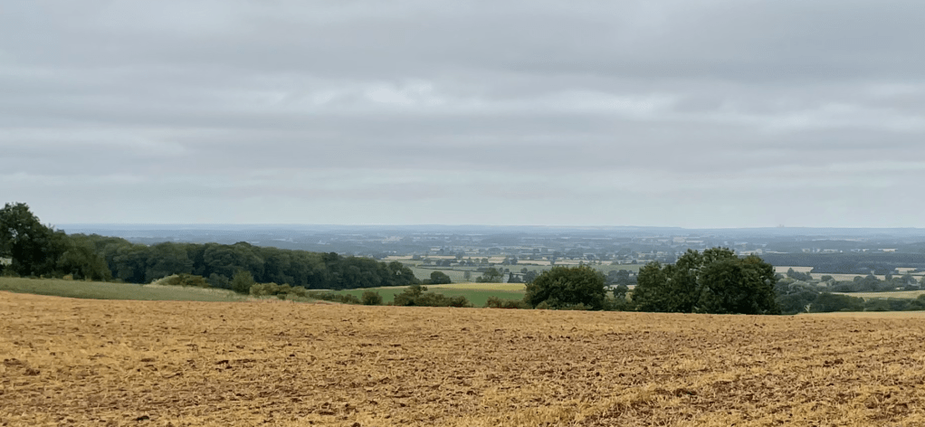 Refreshed after our break we set off on a farm track. There was open countryside all around us. The fields were nicely striped from recent ploughing activities.