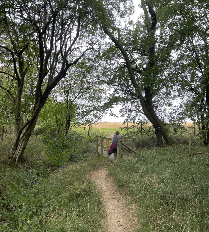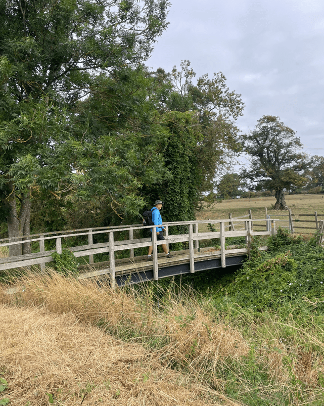 Shortly, we were crossing a wooden bridge and out onto open fields.