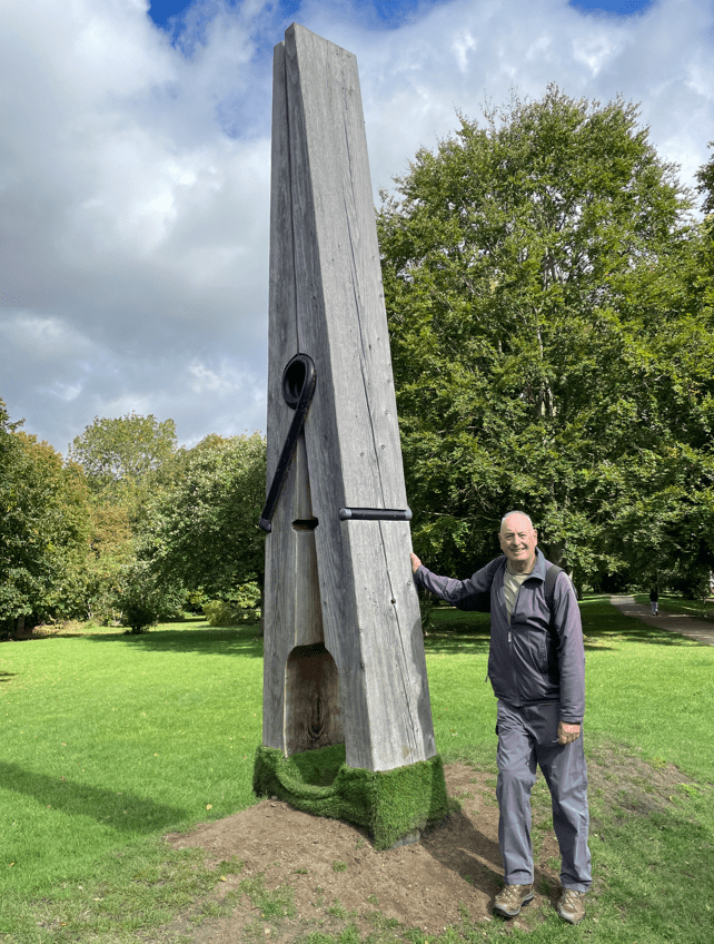 Adjacent to the free car park in Queen Elizabeth Park was a sculpture of a large clothes peg (the sculptor is Nigel Sardeson)- most unusual!