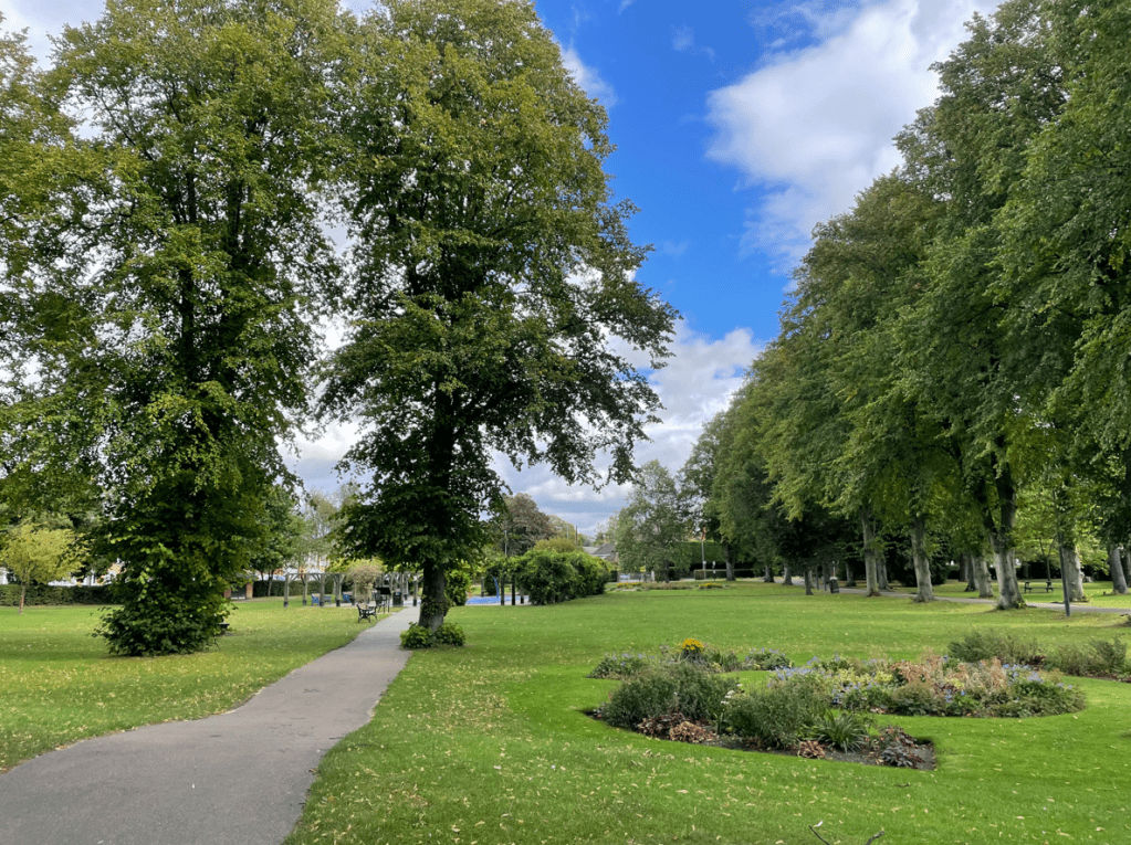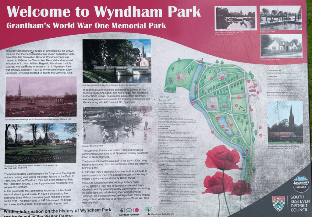 Today myself and Angela enjoyed a short, 4.5-mile circular walk taking in the skyline of Grantham. The walk started in Queen Elizabeth Park where we crossed the road and entered Wyndham Park in the centre of Grantham. We strolled through the park beside the River Witham and then joined field paths and tracks around Harrowby. After a short uphill section we were rewarded with some fine views across Grantham. A short stretch through a residential area completed the walk.