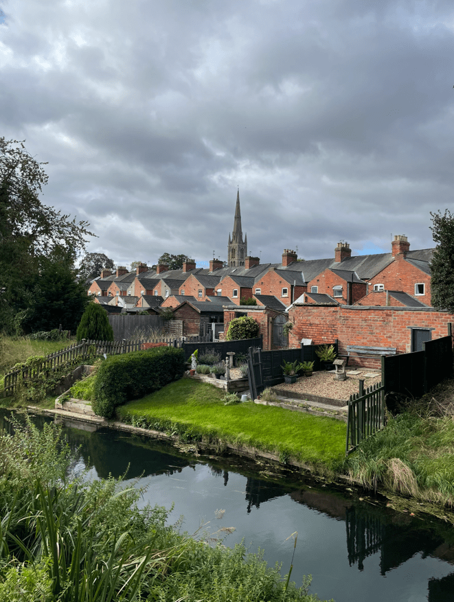 The River Witham was quite peaceful today – it has been known to flood in recent times. The tall spire of St Wulframs Church (the third highest in England) towered over the rooftops of the town.