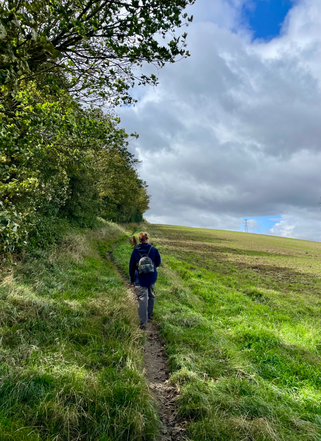 Soon we reached a tarmac lane and headed past Harrowby Hall and down the edge of a field where we turned left and uphill to Halls Hill.