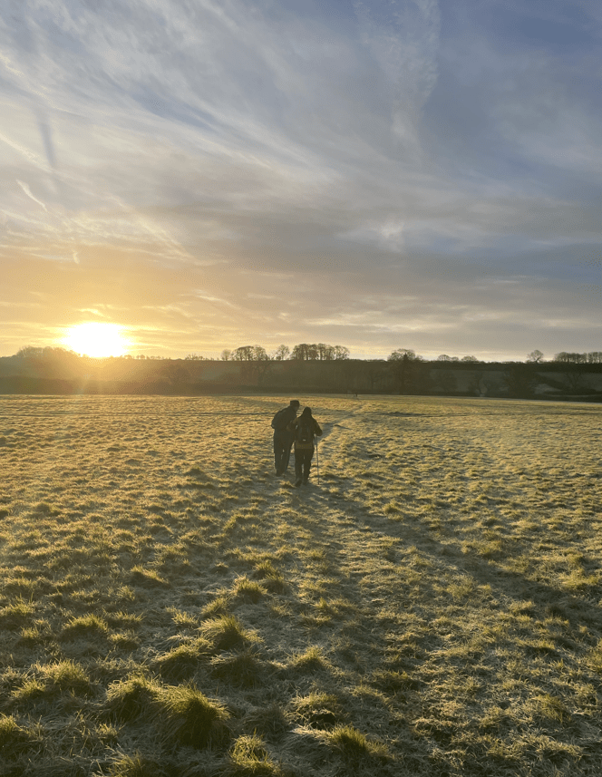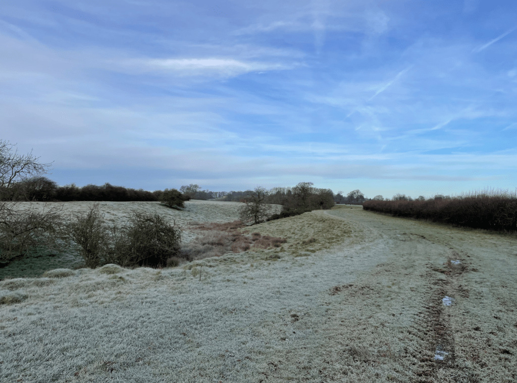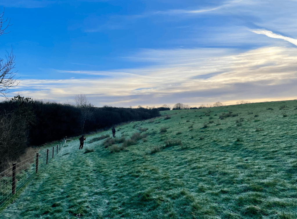 The sun was rising above the horizon and the fields were frosty – it all looked very scenic. We continued up a slight incline which certainly got the blood pumping and warmed us up. Chris was setting the pace.