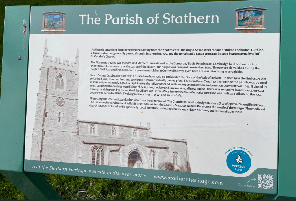 After our break – my bacon and egg bap was delicious -we headed out of Stathern passing through the grounds of the picturesque St Gulthac’s church.