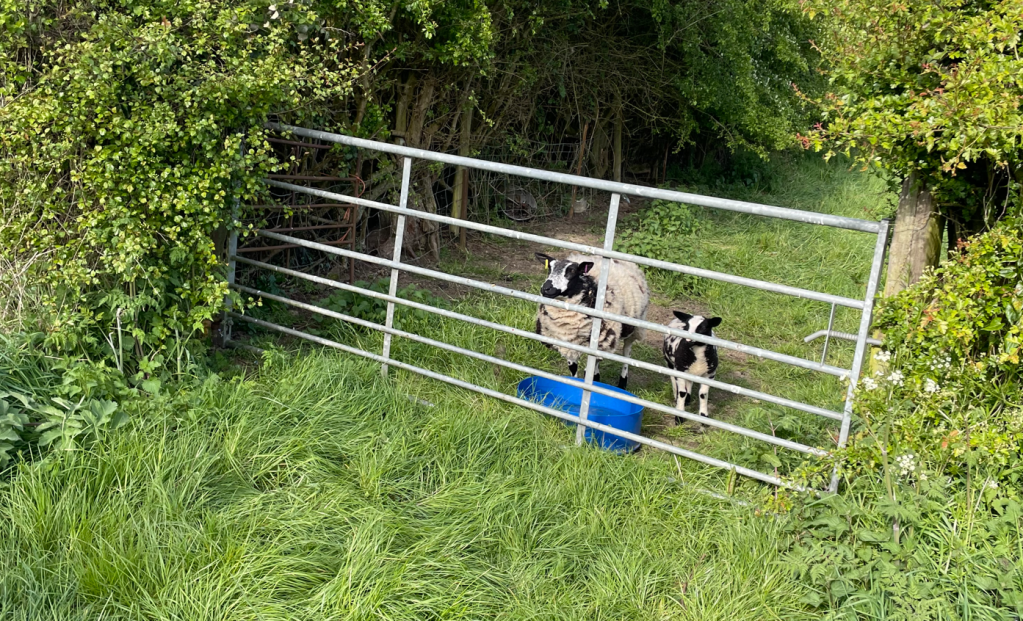 We left Stathern along a track – Pasture Lane -which is on the Cross Britain Way and spotted unusual black and white sheep along the way.