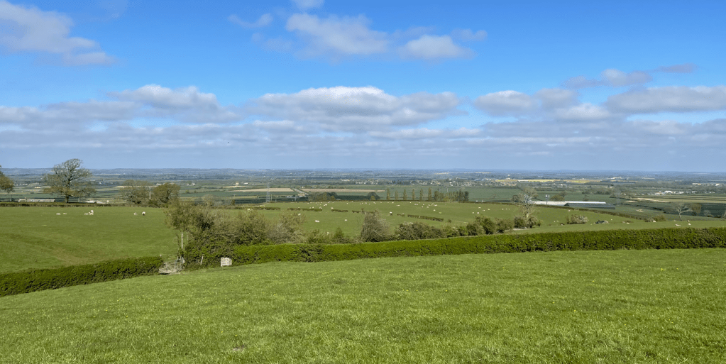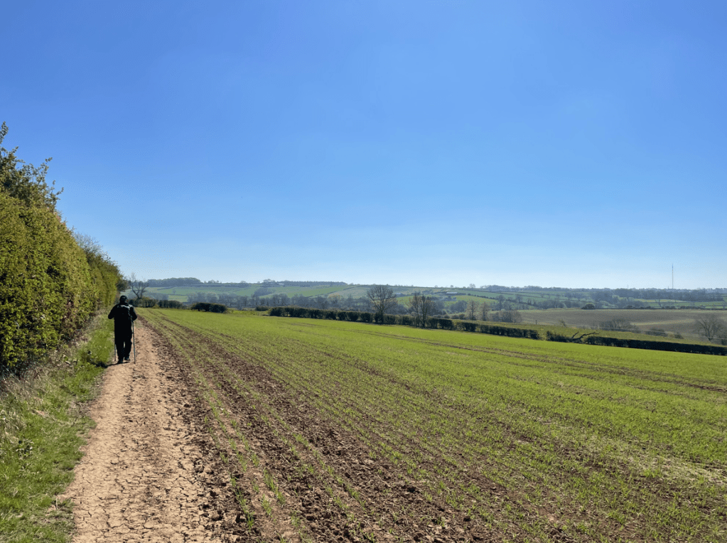 Turning off the track we crossed fields and as we climbed slightly had extensive views across the Vale of Belvoir. The fields were dry – no signs of any mud!