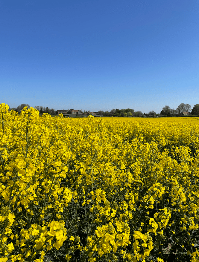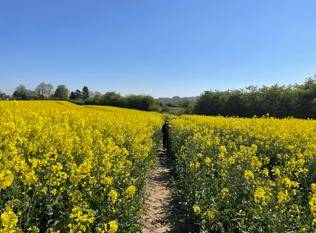 We met a runner who informed us that he runs marathon’s and ultra-marathon’s – he did look fit. Soon, we were crossing a field of oilseed rape with its vibrant yellow flowers.