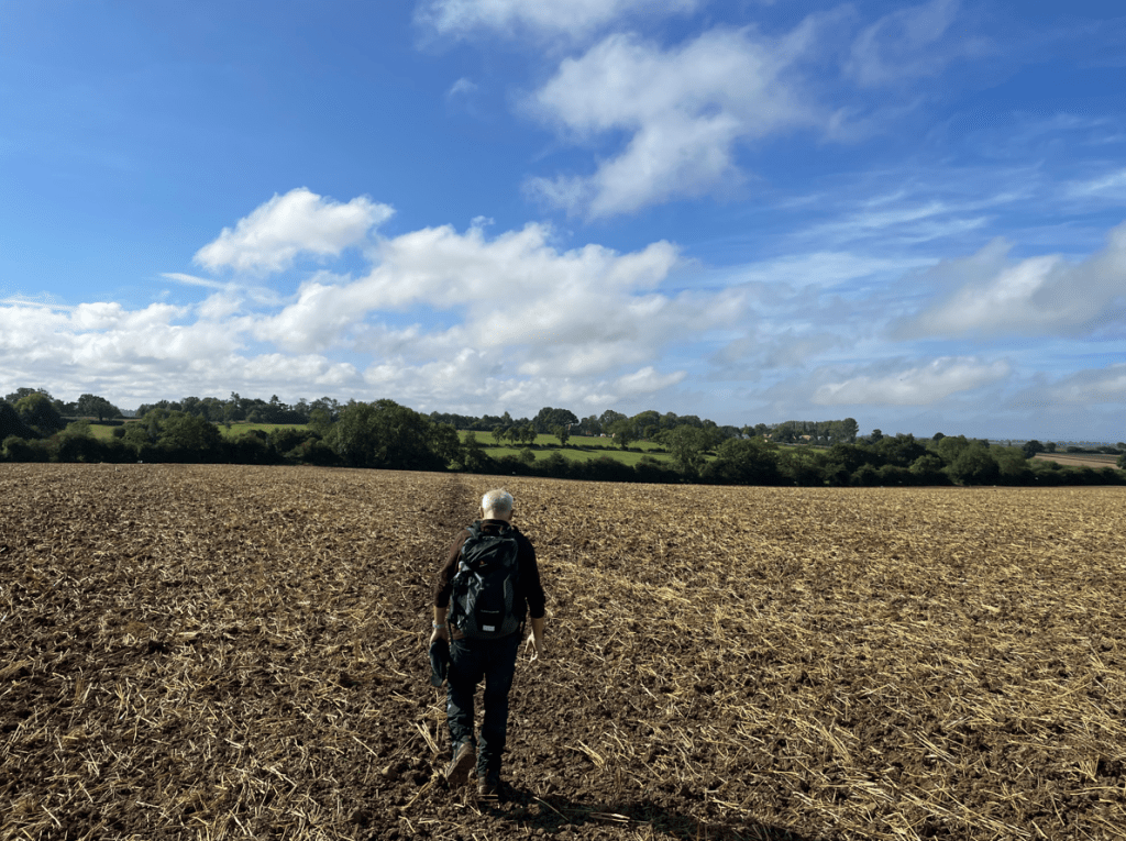 Leaving Burrough-on-the-Hill we took fields towards Thorpe Satchville. Crossing some fields was a slog as they had been recently ploughed. We had nice views across the fields of England’s green and pleasant land.