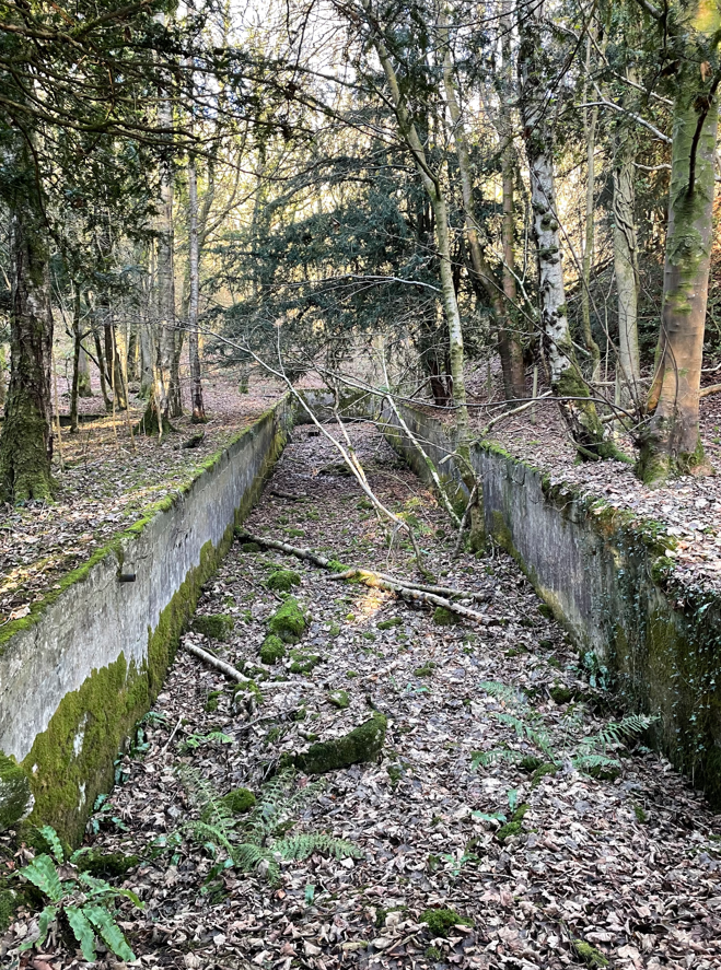 Approximately half way up the hill we found a fenced off area containing a couple of large concrete holes – something to do with the water supply but obviously defunct now.